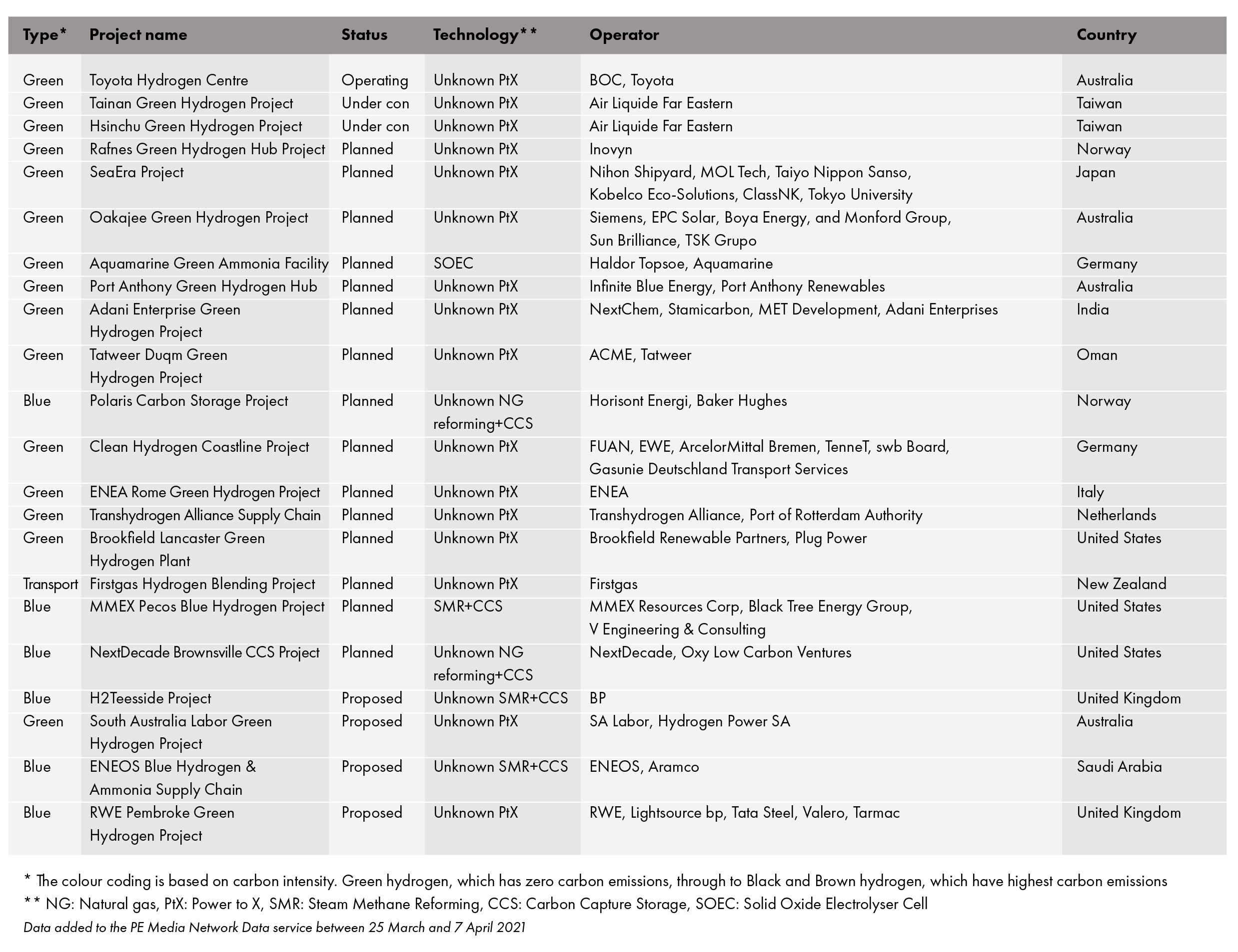 In Taiwan, Air Liquide has completed the first phase of construction on its 25MW hydrogen electrolyser plants in the Tainan and Hsinchu science parks. The plants will be able to produce up to 5,000m³ of ultra-high purity hydrogen per hour. Construction of phases two to five will continue over the next two years. Once complete and supplied with renewable energy, the plants will prevent more than 35,000t/yr of direct CO₂ emissions.