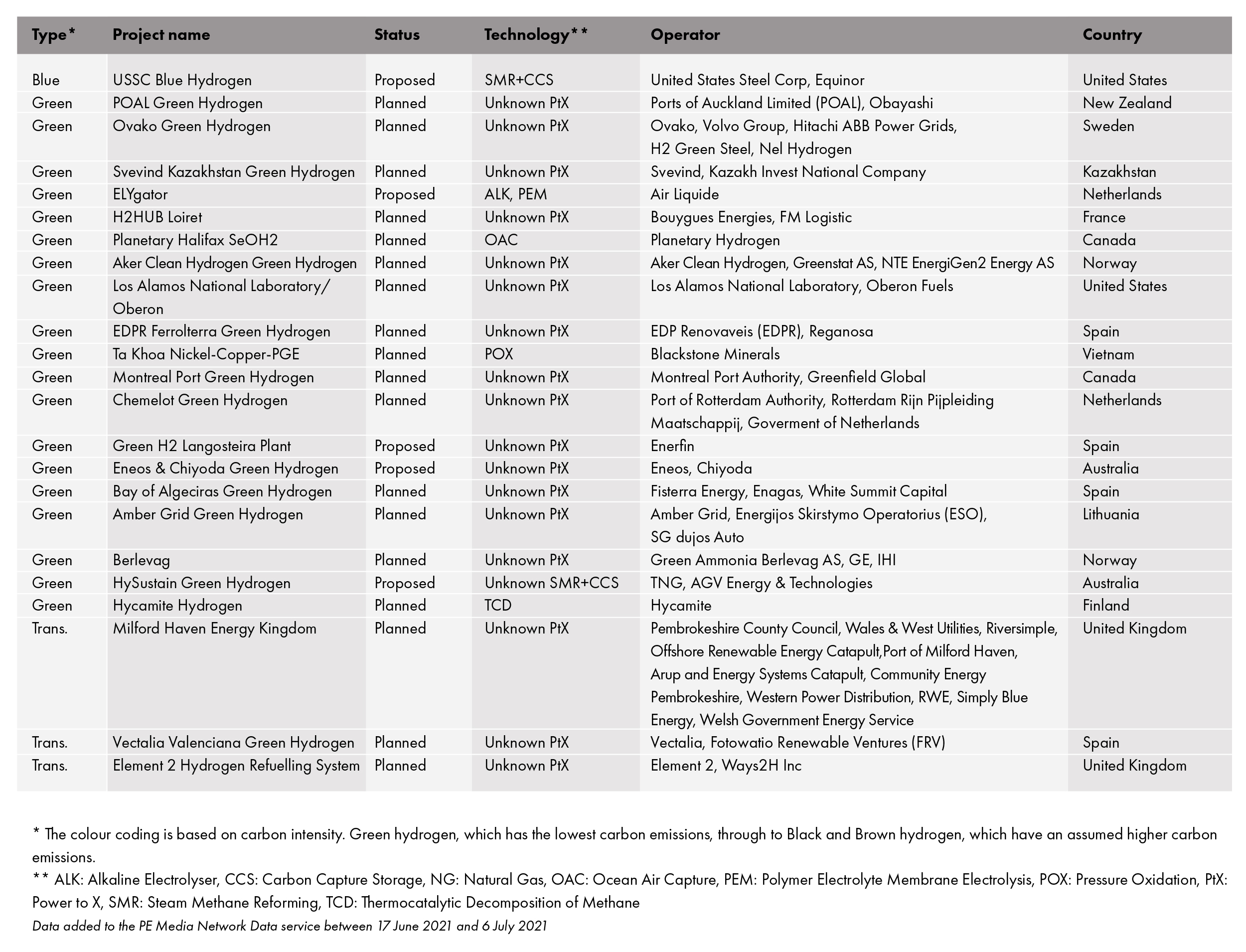 Twenty-three new projects were added to our database in the last two weeks across green and blue hydrogen.