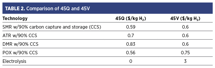 Results and sensitivity analysis. To compare the benefits of each technology, an example with 90% carbon capture was computed. The results for this scenario are shown in TABLE 2. The amount of 45Q received varies depending on the technology, since each one produces a different amount of direct CO₂. The 45V credit also changes, as it is a tiered system and each technology has a different carbon intensity.