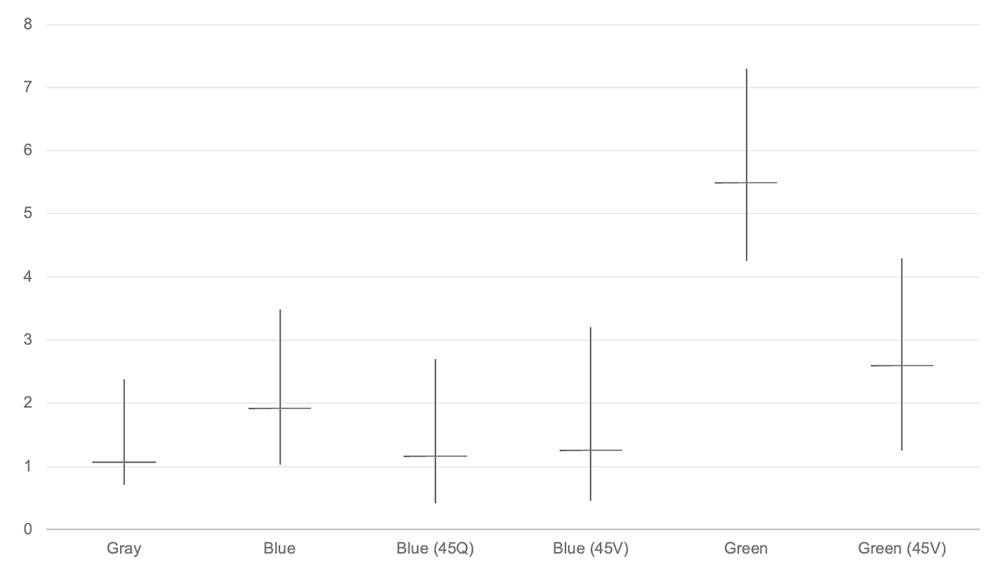 To determine the overall cost ranges, the results from the sensitivity analyses were used to define the minimum and maximum values. The costs of CH4 reforming technologies were averaged to estimate the gray and blue H2 production costs. For electrolysis, the lower end of the range includes the case where oxygen is sold as a byproduct, which helps reduce the total cost. The results are shown in FIG. 6.