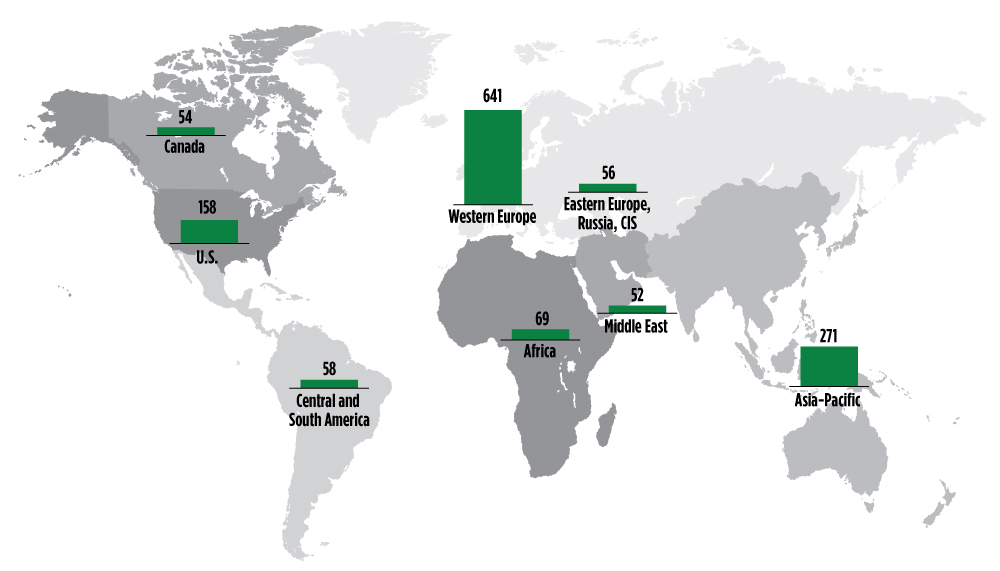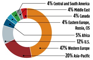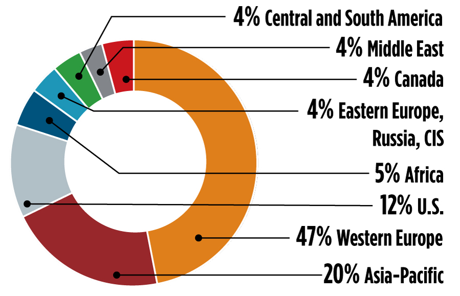 Gulf Energy Information’s Global Energy Infrastructure (GEI) database is tracking nearly 1,360 active hydrogen (H2) projects globally. Nearly half of these projects are in Western Europe (47%), followed by Asia and the U.S. In total, these three regions comprise nearly 80% of active H2 project market share globally. When broken down by production pathway, nearly 85% of active projects are green H2 projects, meaning that H2 is produced via renewable energy and electrolysis. Green H2 projects are followed by blue production pathways. H2T