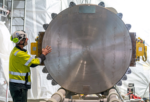 Electrolyzer assembly begins. With the delivery of the first blocks, the installation of the electrolysis stacks at the Bad Lauchstädt Energy Park begins. They form the heart of Sunfire’s pressurized alkaline electrolyzer. A total of six high-performance stacks, each consisting of six blocks and providing a combined capacity of 30 MW, will produce up to 4,000 tpy of green hydrogen.