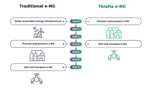 The partnership with Teralta helps Tokyo Gas make progress towards its target of replacing volumes equivalent to 1% of its city gas sales with e-NG and biomethane [renewable natural gas (RNG)] by 2030, and more than ten times that amount by FY2040. Through collaborations with a wide range of partners in Japan and overseas, Tokyo Gas will contribute to the Japanese government’s goal of carbon neutrality by 2050.