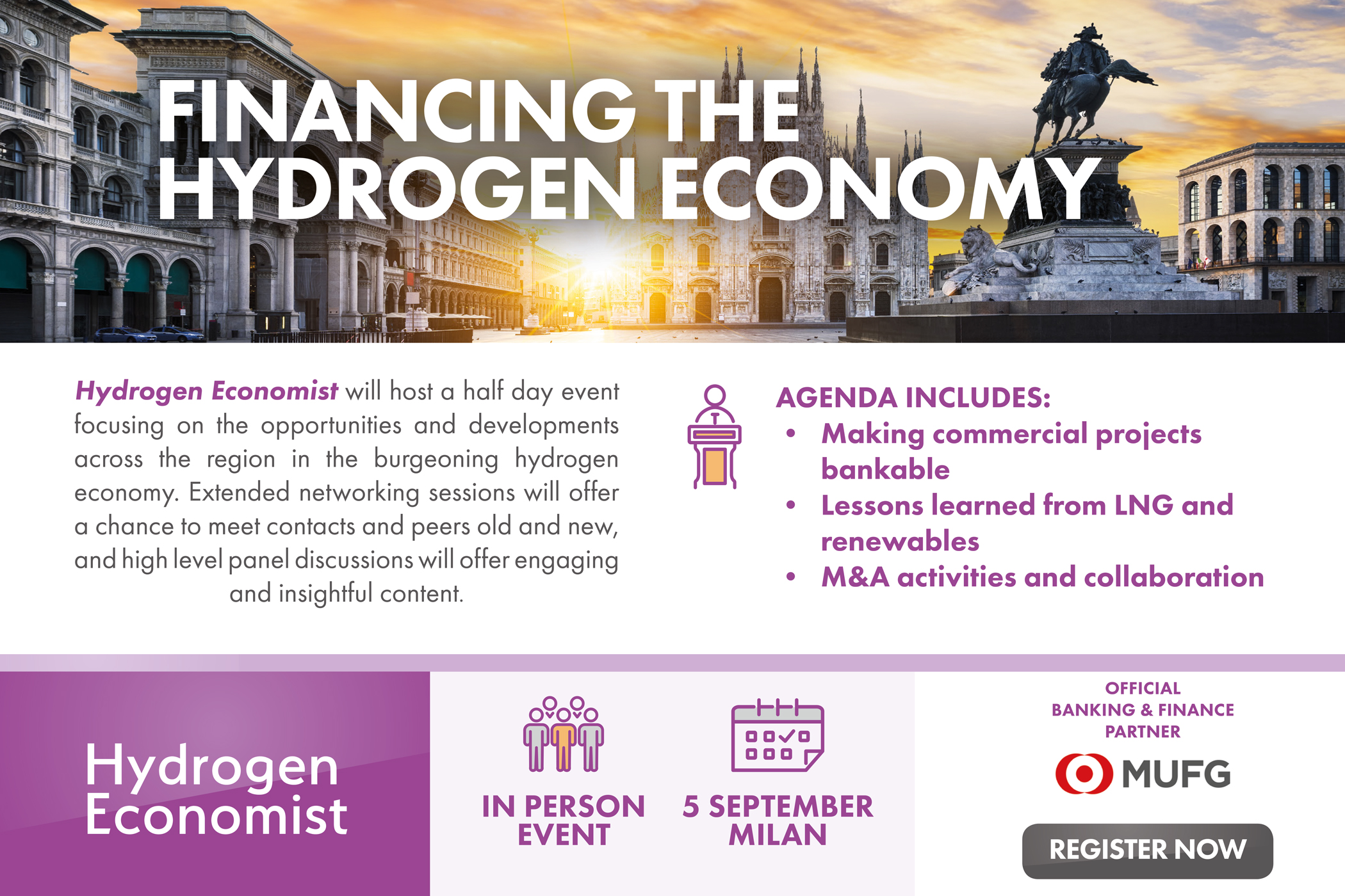 Hydrogen Economist invites you to an in-person half-day briefing in Milan to gain insight into how the industry needs to work together to meet existing local and regional strategies and policies to enable this vital element of the energy transition.